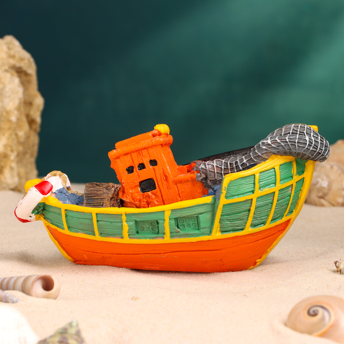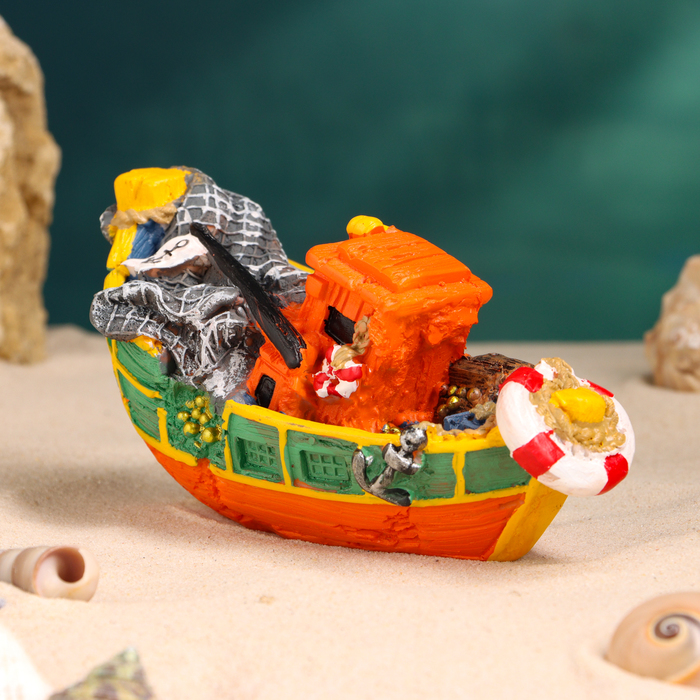 Сувенирная модель корабля «Рыбацкое судно цветное», фигурка полистоун, 16×7×7 см