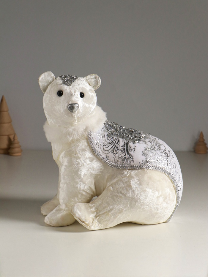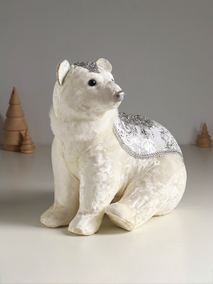 УЦЕНКА Фигурка новогодняя «Белый мишка в накидке с серебристыми узорами», 22×16×24 см
