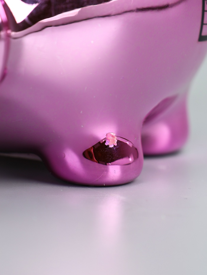 Для производства копилок используют более дешёвую глину, в которой допустимы инородные вкрапления - в следствии чего на изделии могут быть чёрные точки. При обжиге изделия могут образовываться микротрещины, что тоже не является браком.