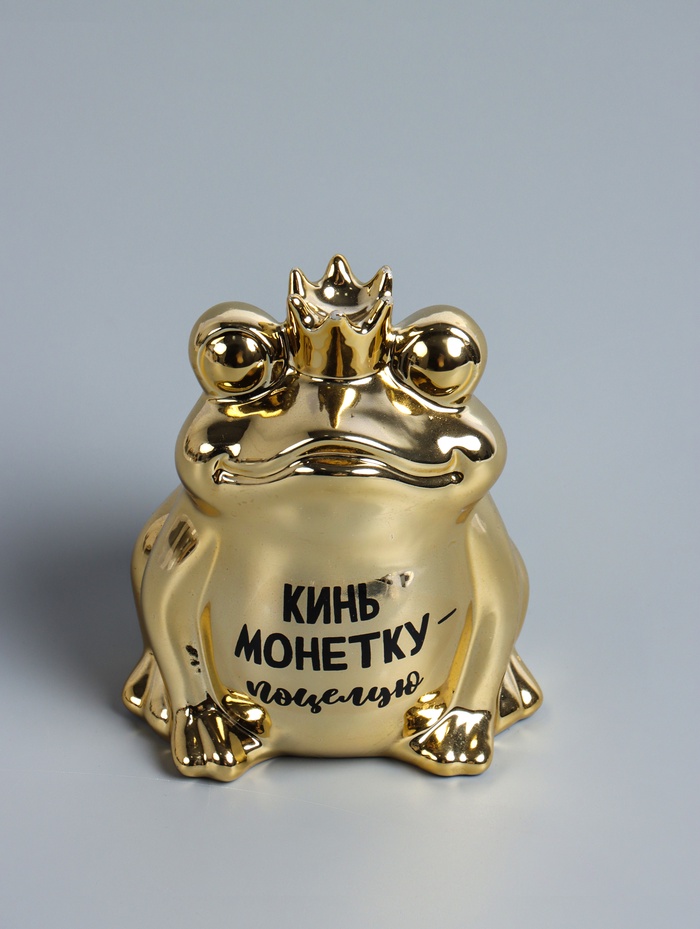 УЦЕНКА Копилка керамика «Золотая лягушка - Кинь монетку - поцелую» 12×10.5×15 см