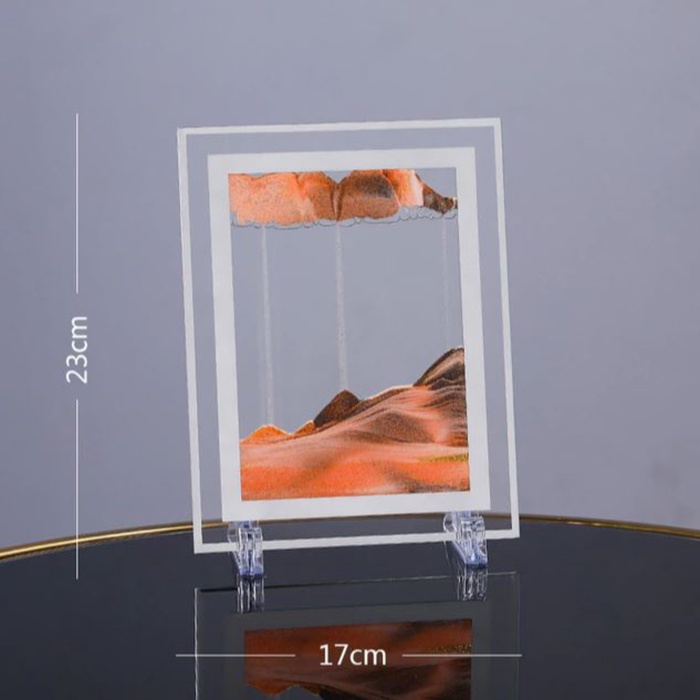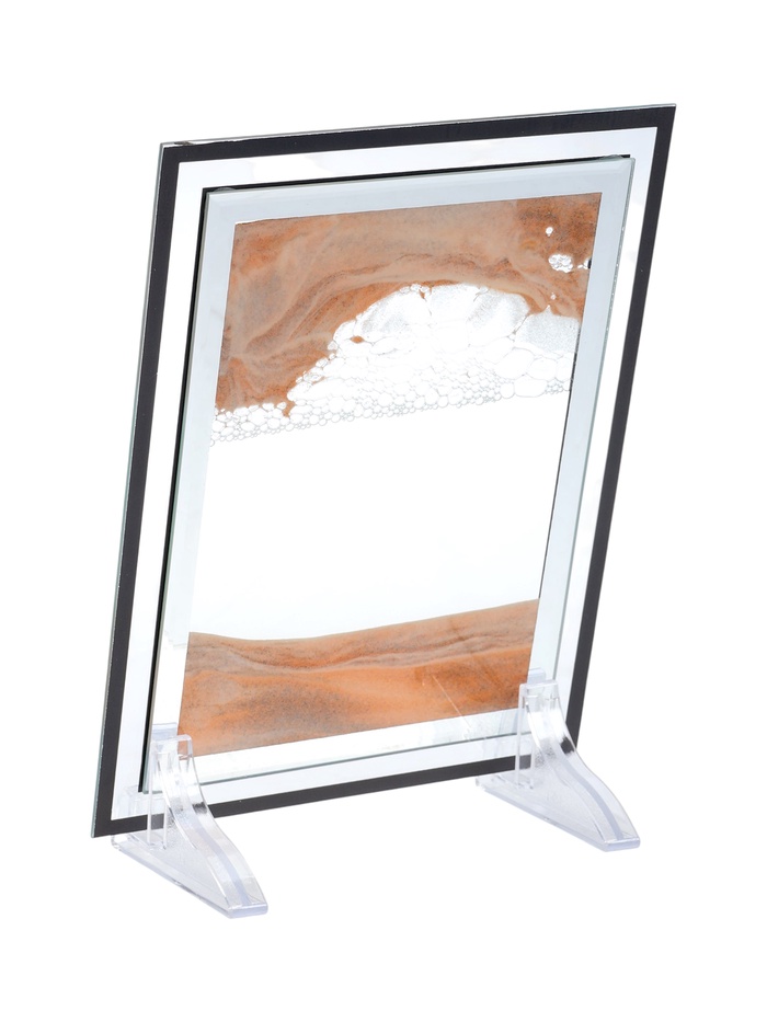 Вы воздействуете одним прикосновением, когда рамка переворачивается, песок начинает произвольно струиться вниз, огибая пузырьки жидкости, образуя удивительной красоты пейзажи. Наблюдение за этим процессом позволяет человеку расслабиться, отдохнуть, успокоить нервы.