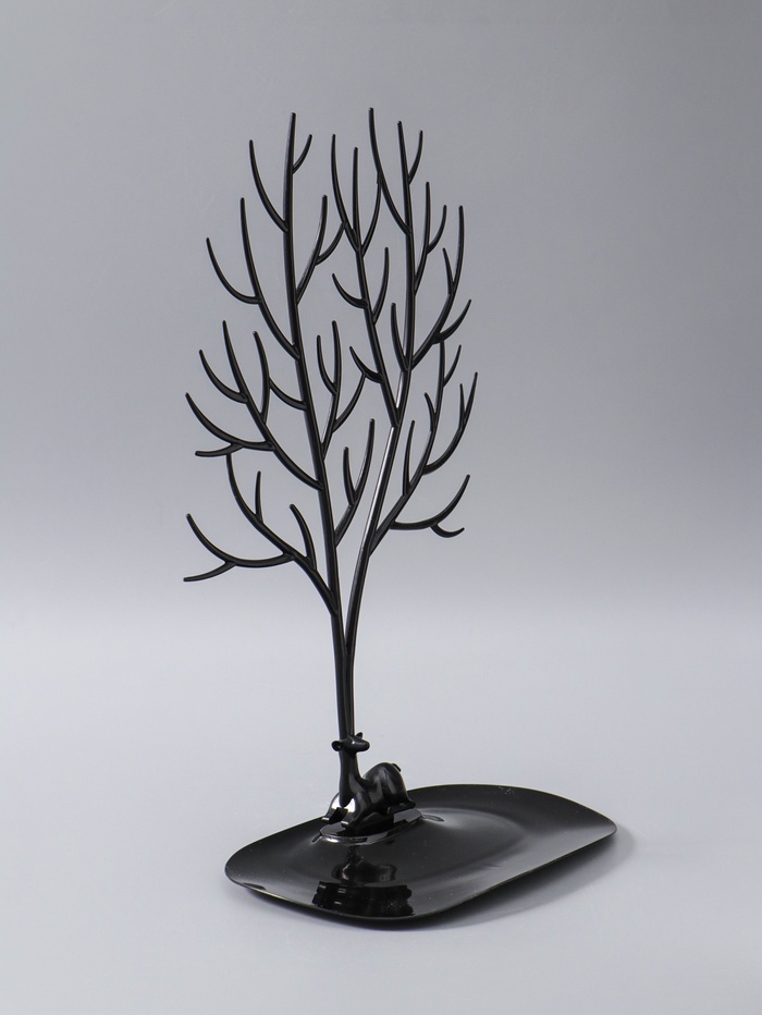 Чёрная универсальная подставка в форме оленя — это гармоничное сочетание функциональности и современного дизайна, которое поможет организовать хранение украшений с максимальным комфортом. Благодаря высоте 41 см и компактным размерам 25×15 см она легко впишется в любой интерьер, добавляя ему стильный акцент и порядок.