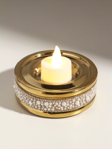 УЦЕНКА Подсвечник керамика на 1 свечу "Ожерелье" d=4,5 см золото 10х10х3,5 см