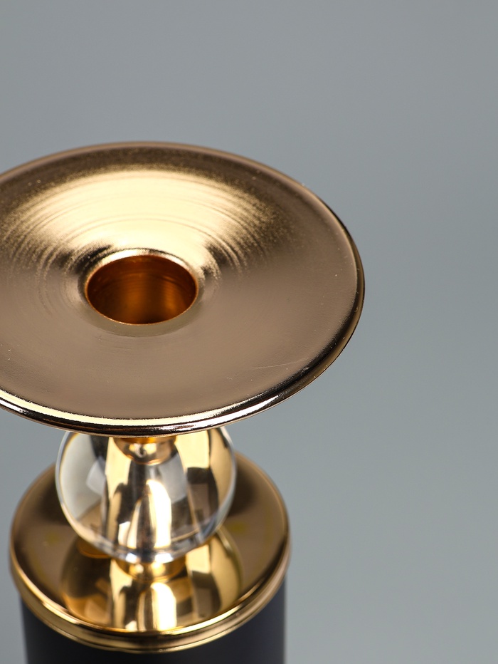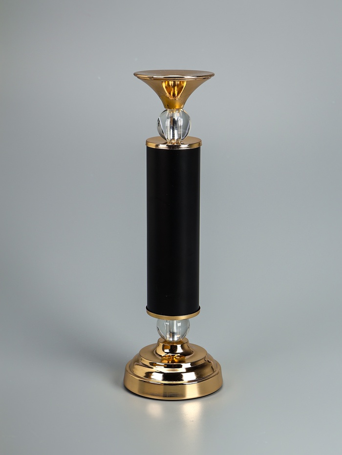 УЦЕНКА Подсвечник металл на 1 свечу «Колонна с кристаллами» чёрный с золотом 36×12×12 см