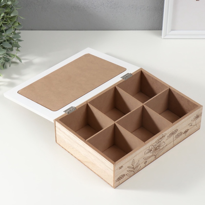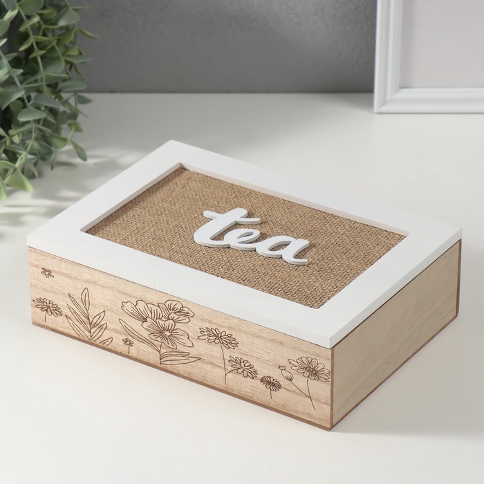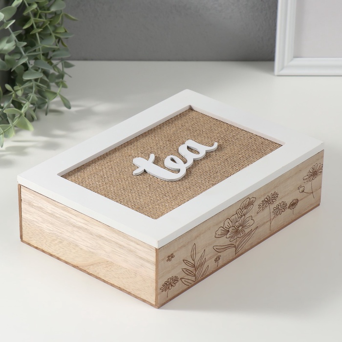 УЦЕНКА Шкатулка для чая 6 делений «Полевые растения», мешковина, 17×24×7 см