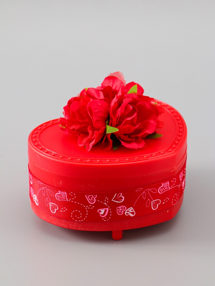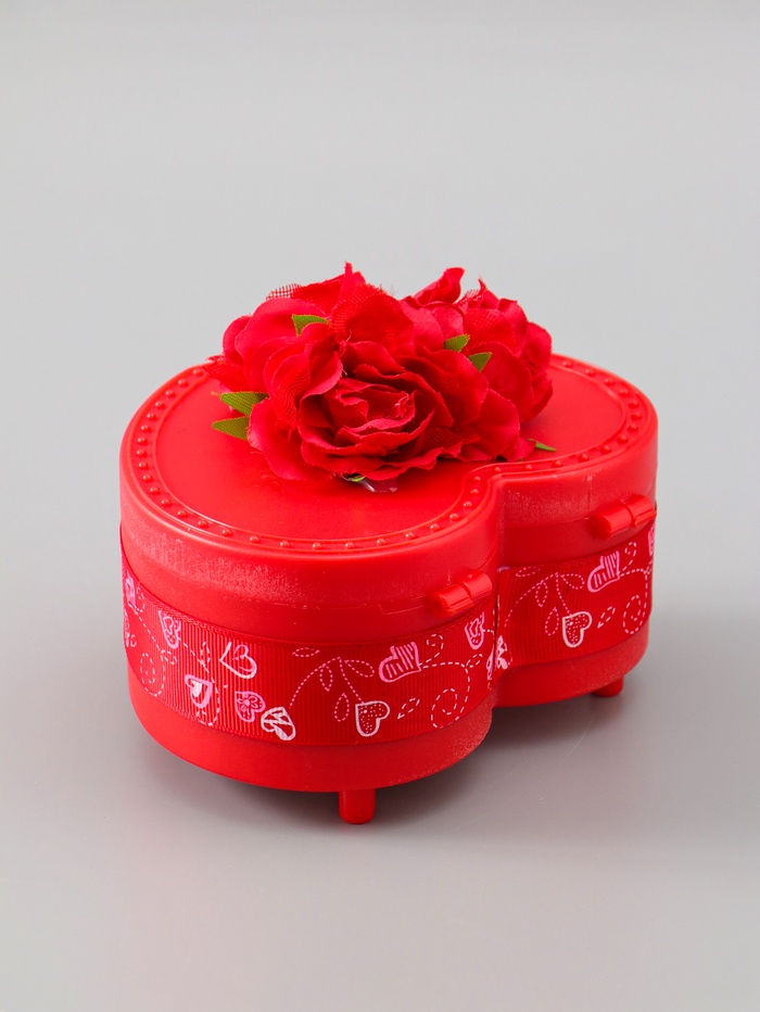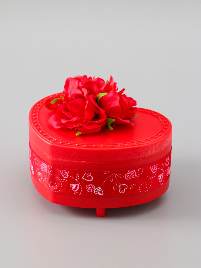 УЦЕНКА Шкатулка музыкальная механическая «Нежные розы» красная 12×13.5×10.5 см
