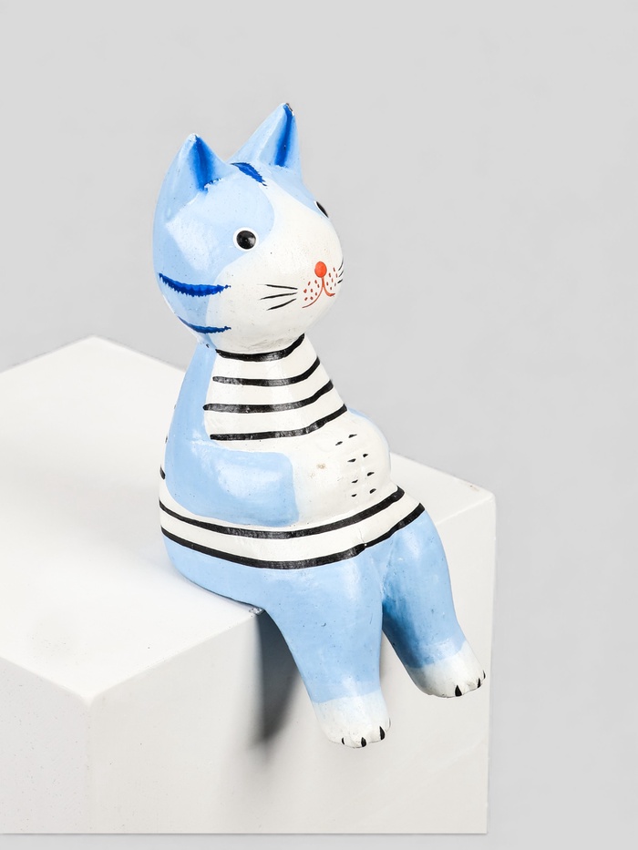 УЦЕНКА Сувенир дерево «Кот сидячий» цв. голубой, 6×6×15 см