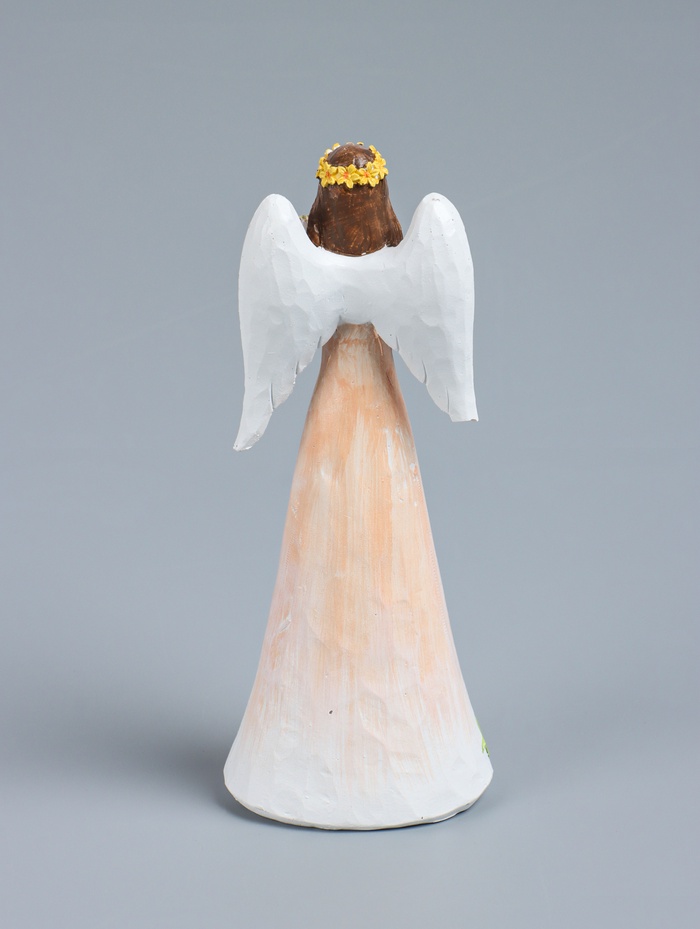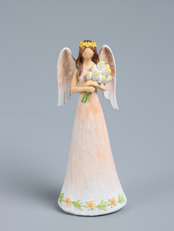 Позвольте себе окунуться в мир весеннего настроения и нежности с этой изысканной фигуркой, которая станет настоящим украшением вашего дома. Девушка-ангел в персиковом платье, держащая в руках букет тюльпанов, создаёт образ, наполненный теплом и радостью. Этот изящный ангел станет символом весны, любви и обновления в вашем интерьере.