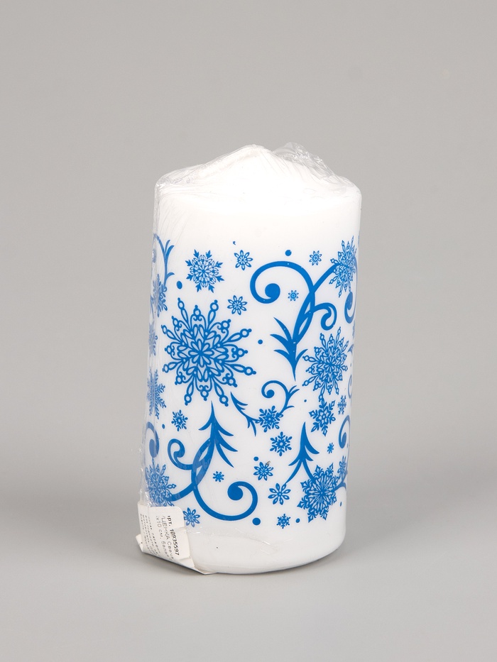 УЦЕНКА Свеча - цилиндр новогодняя «Снежинки», 5×10 см, белая с синим