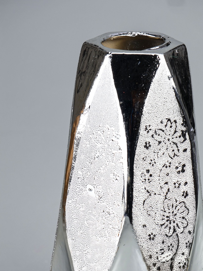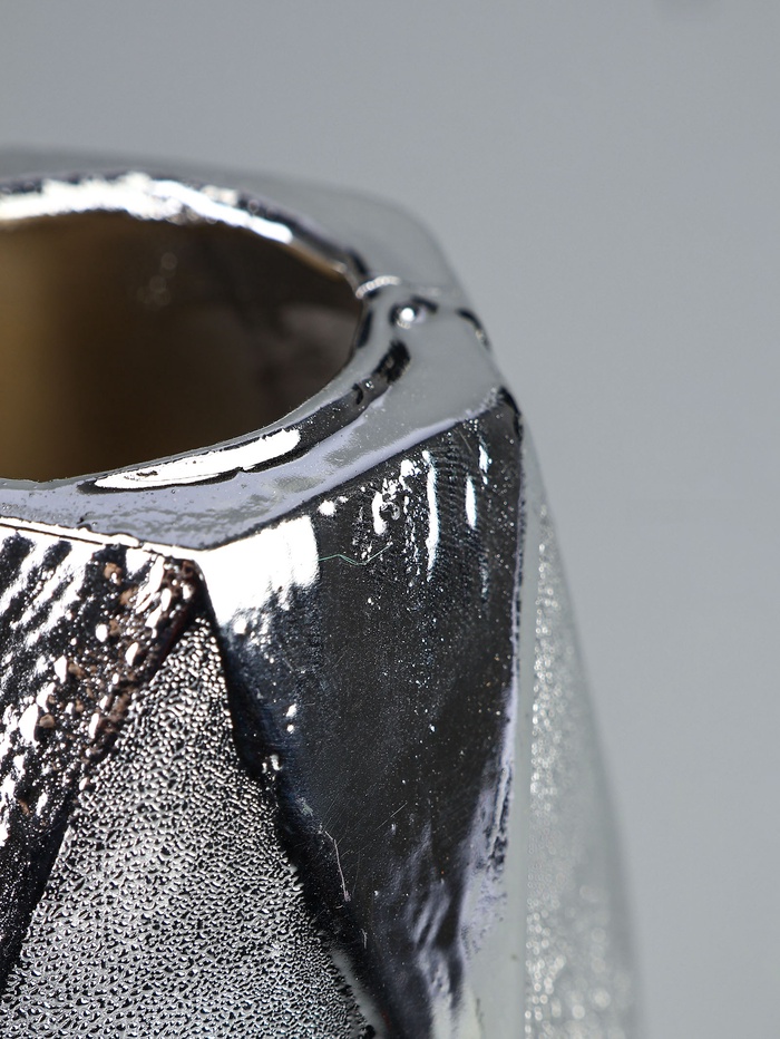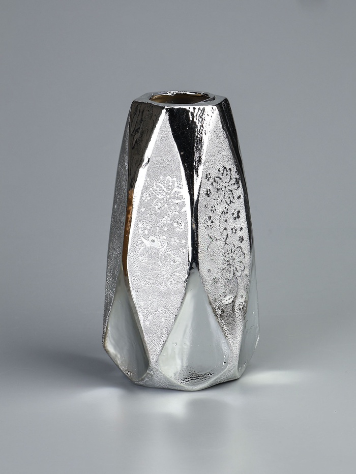 УЦЕНКА Ваза керамика настольная "Гаэль" грани, d-4см 17х8 см, серебро