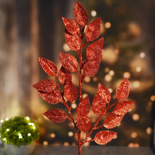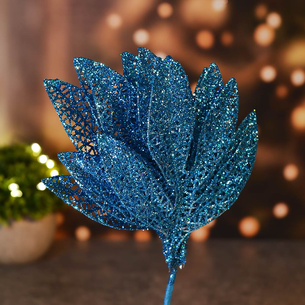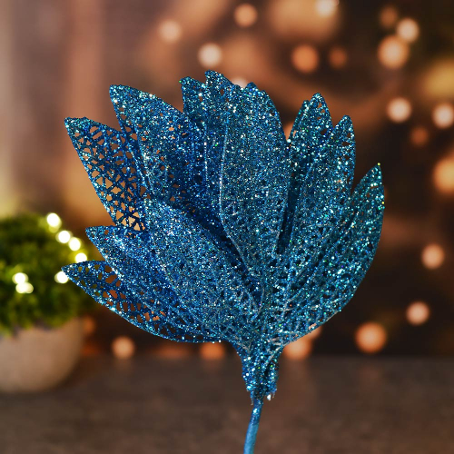 Украшение новогоднее "Ветка Сказочный листопад" 25см, голубой