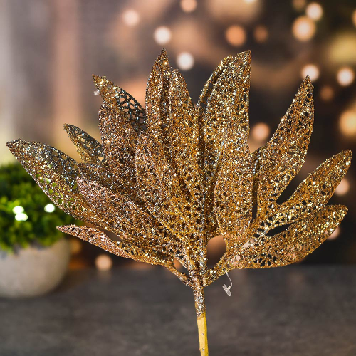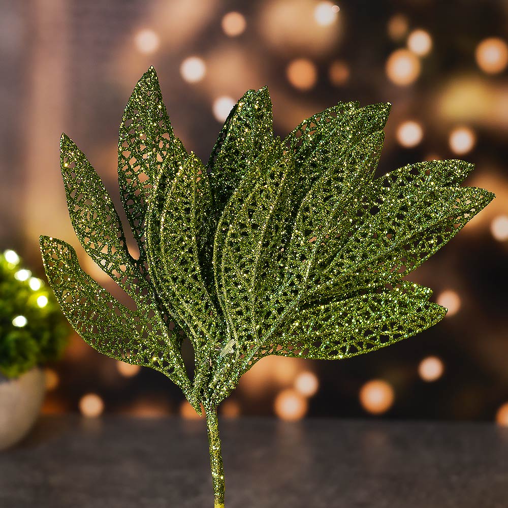 Украшение новогоднее "Ветка Сказочный листопад" 25см, нежный зеленый