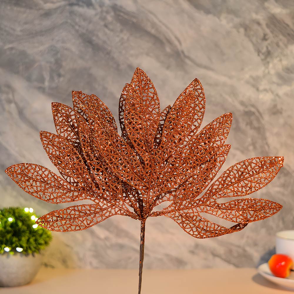 Украшение новогоднее "Ветка Сказочный листопад" 25см, янтарь