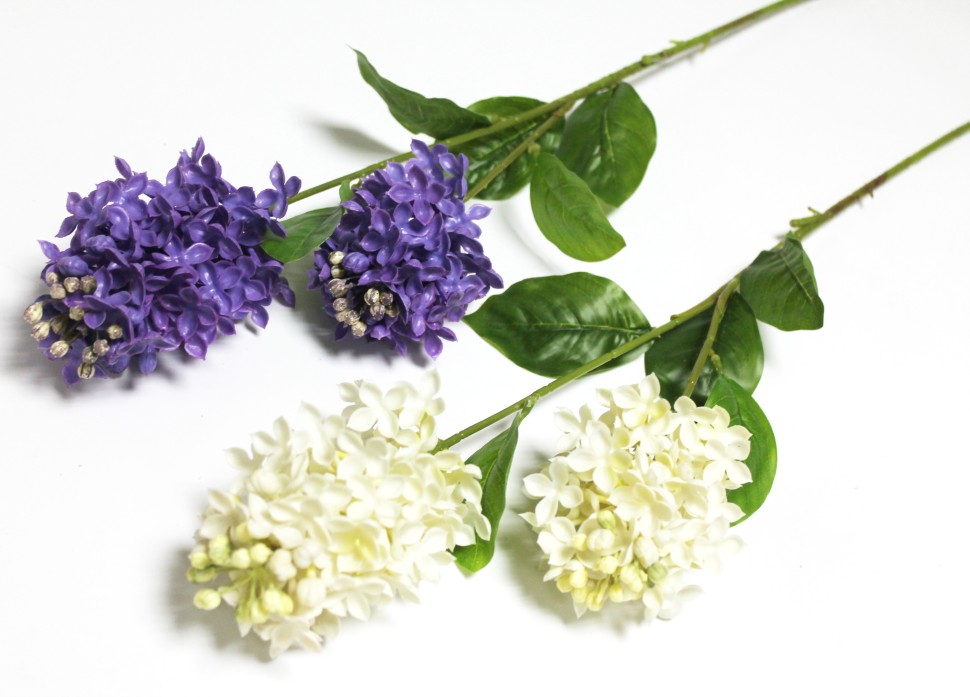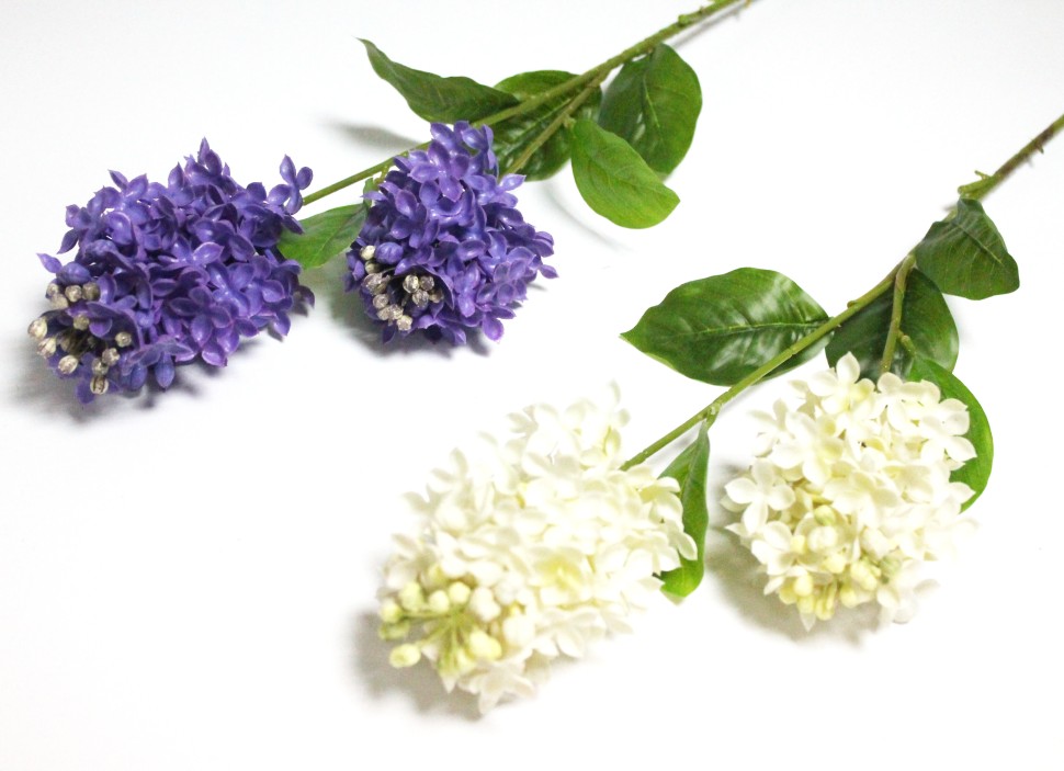 В12053 Б/С Ветка сирень силикон многоцветковая 2 крупн.головы 70см