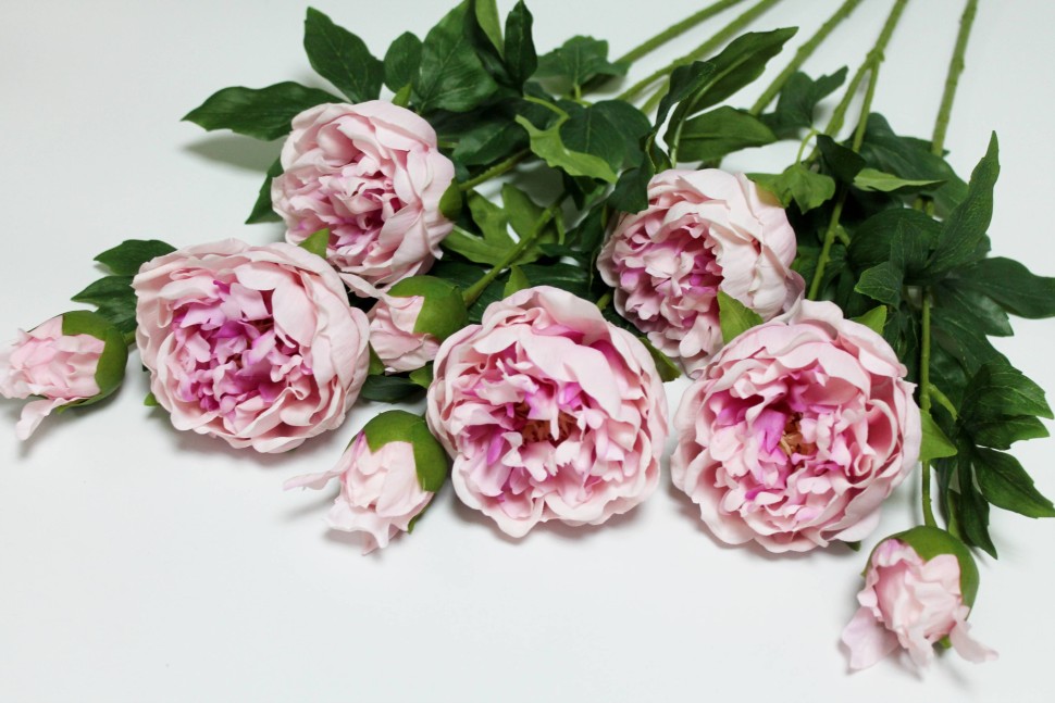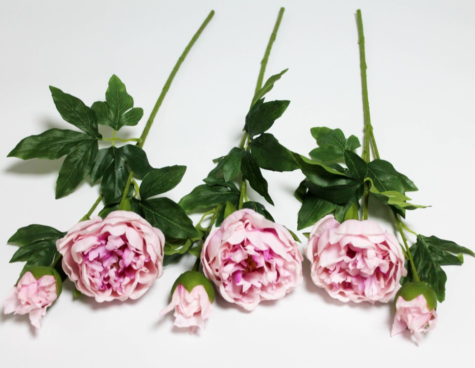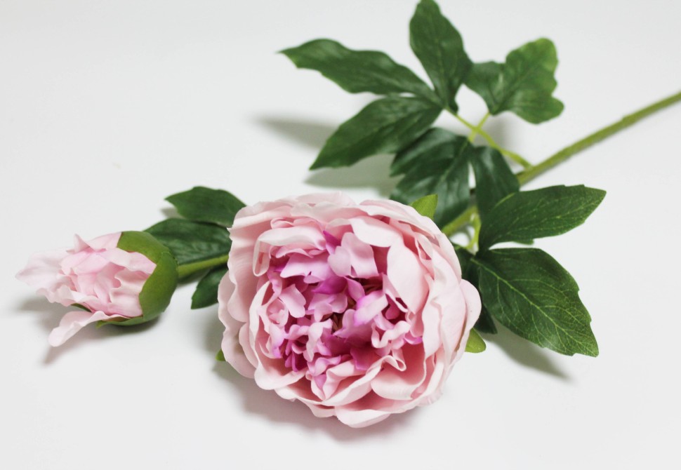 В12086 Б/С Ветка пион 1г.+1б.(Real Touch) живое на ощупь(это не силикон!) 65см