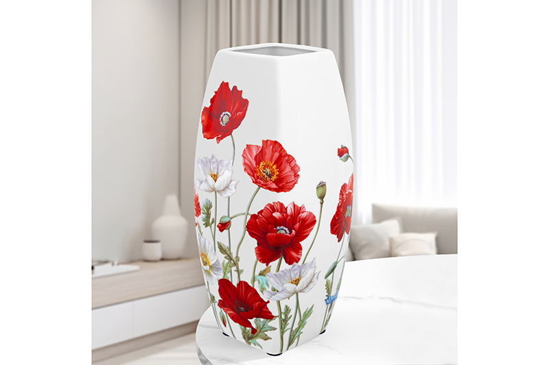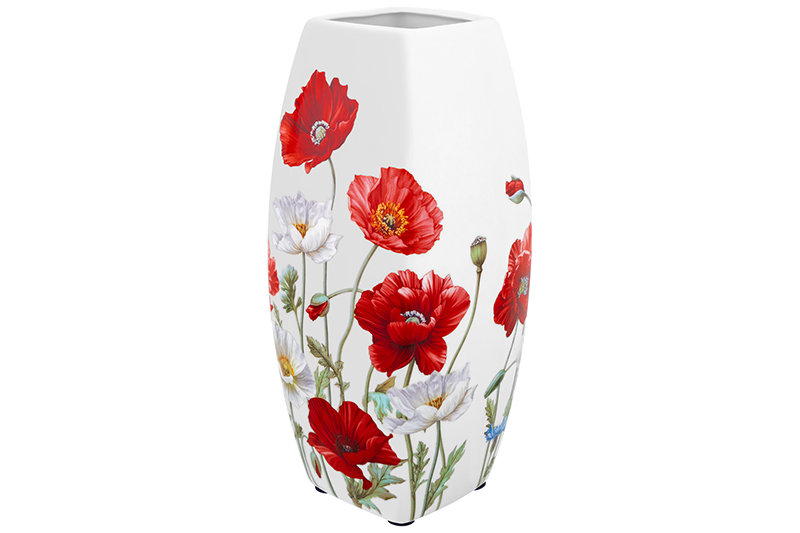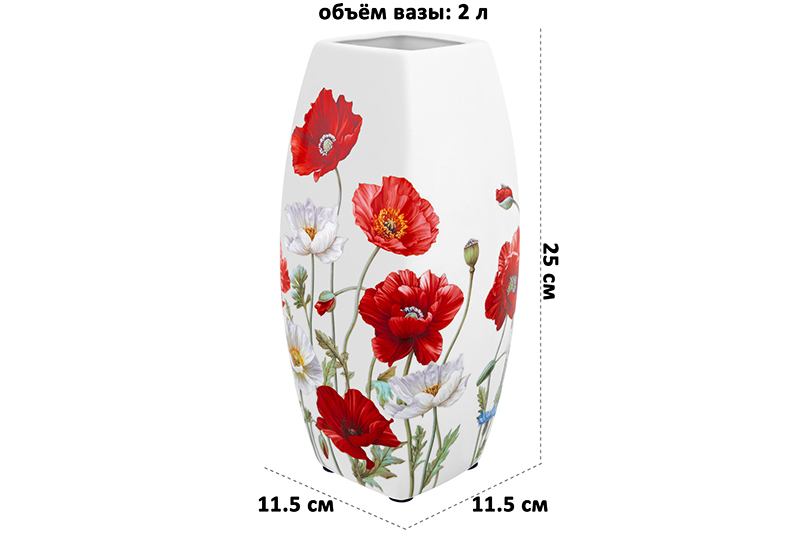 Ваза 2 л 11,5*11,5*25 см "Маки" квадрат, NEW BONE CHINA