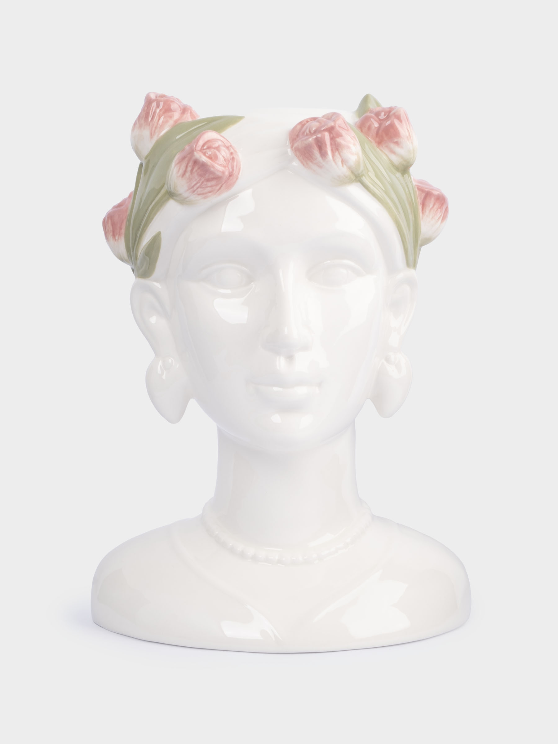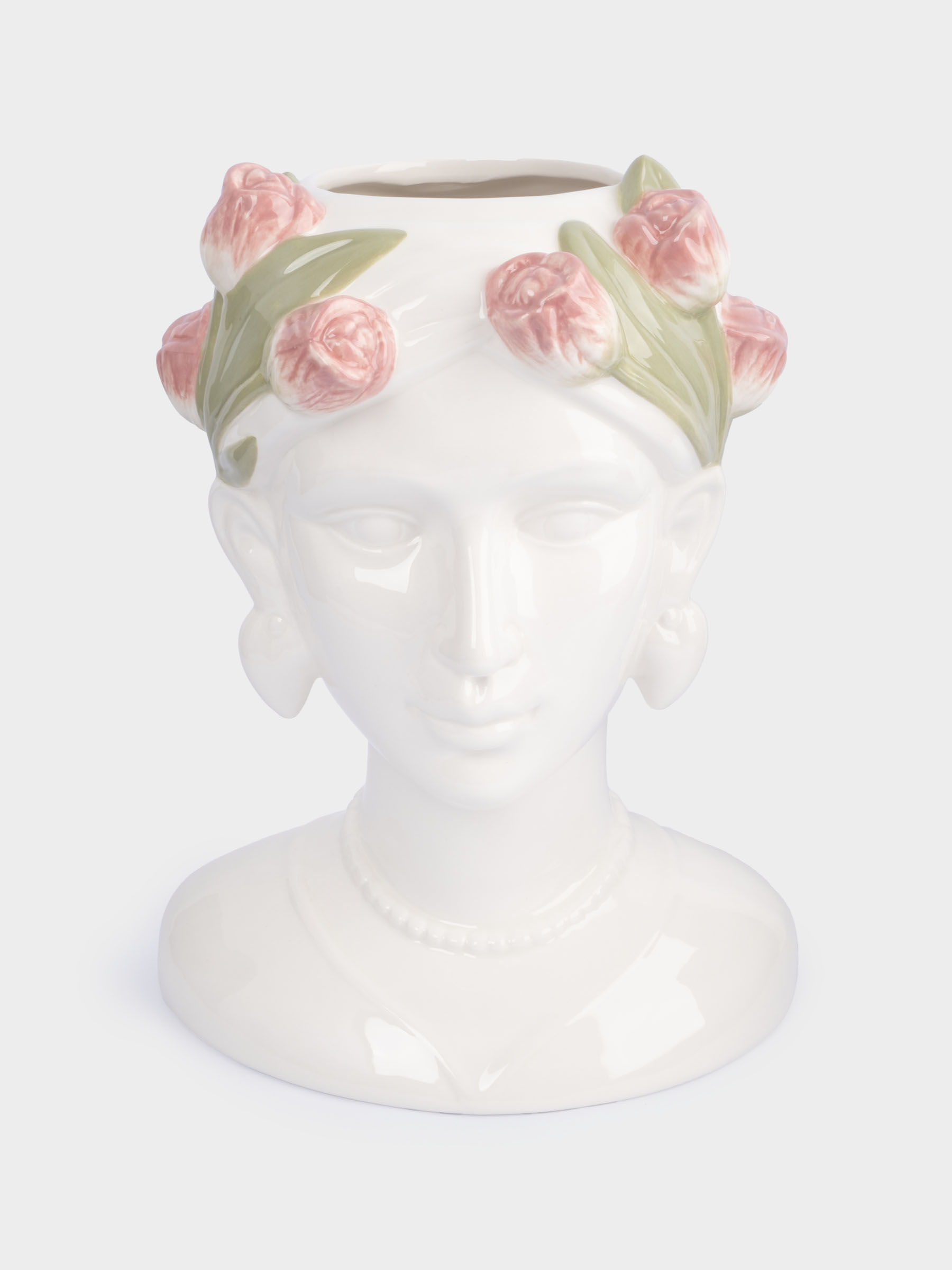 Ваза для цветов, 30 см, керамика, молочная, Женщина с тюльпанами, Tulip