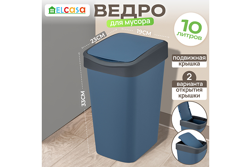 Синее ведро для мусора с подвижной крышкой от бренда ELCASA размером 23,5х19,5х33,7 см и объёмом 10 литров поможет поддерживать чистоту в вашем доме, офисе или на улице. Размер дна 18,6x15 см. Мусорный контейнер выполнен из полипропилена. Этот вид пластика считается наиболее безопасным, так как не содержит бисфенол А и не выделяет вредных веществ. Мусорное ведро прямоугольной формы с ободком чёрного цвета можно разместить в ванной комнате, туалете или на кухне. Поставьте урну из пластика на пол возле раковины, стола или в хозяйственный шкаф. Высокое пластиковое ведёрко можно использовать как офисное – под ненужные бумаги. Большая ёмкость обеспечивает достаточное пространство для хранения мусора любого вида. Можно приспособить на даче как уличную мусорку. Пластиковые мусорные вёдра выполнены в универсальном дизайне и хорошо сочетаются друг с другом. Можно использовать несколько баков из пластика от бренда ELCASA для организации раздельной системы сбора мусора. Корзина для мусора с откидной крышкой станет незаменимым помощником для поддержания чистоты как в доме, так и на улице и поможет организовать порядок в любом пространстве. /
