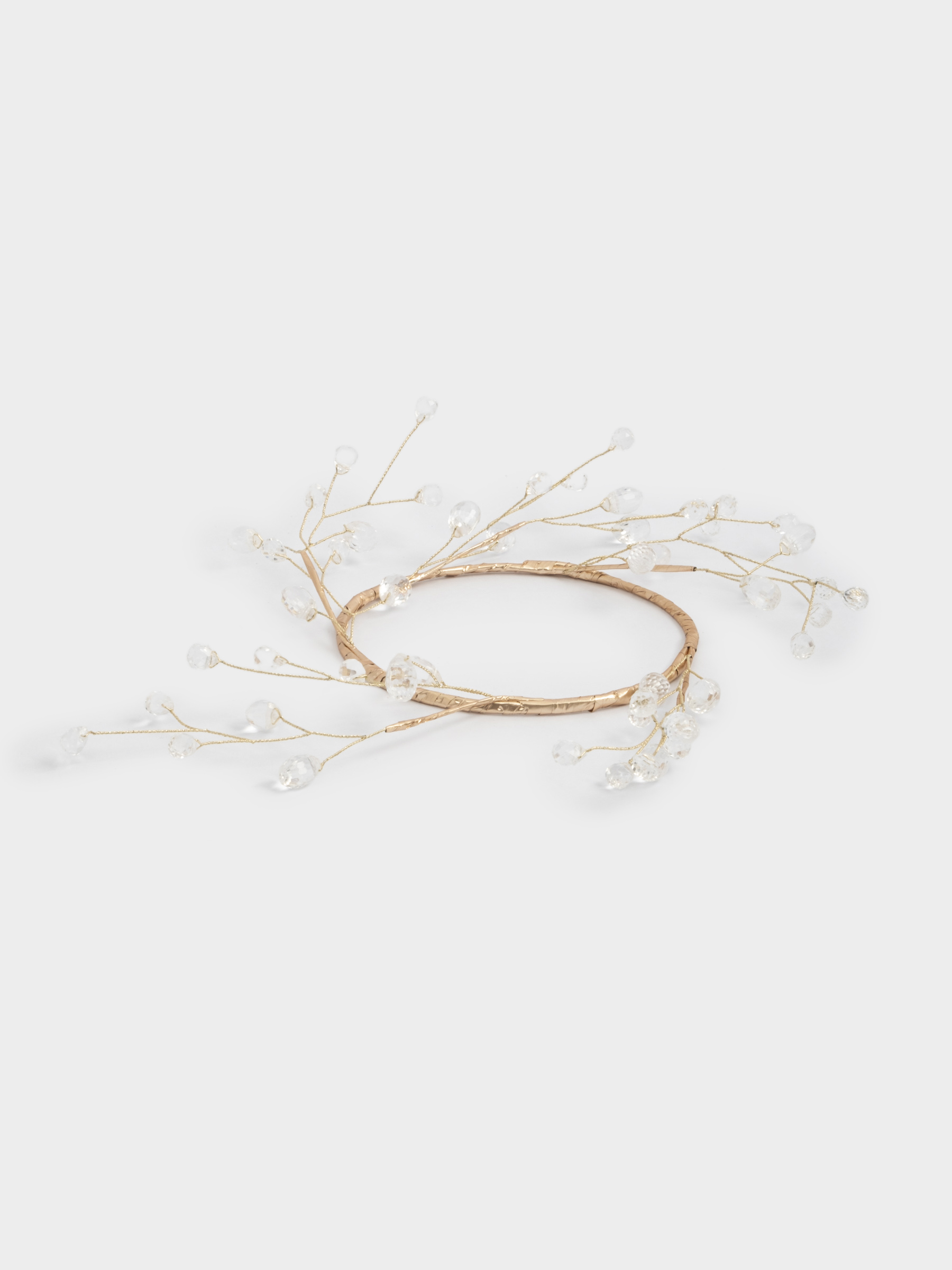 Венок декоративный, 10х20 см, для чайной свечи, акрил/металл, золотистый, Кристаллы, Event