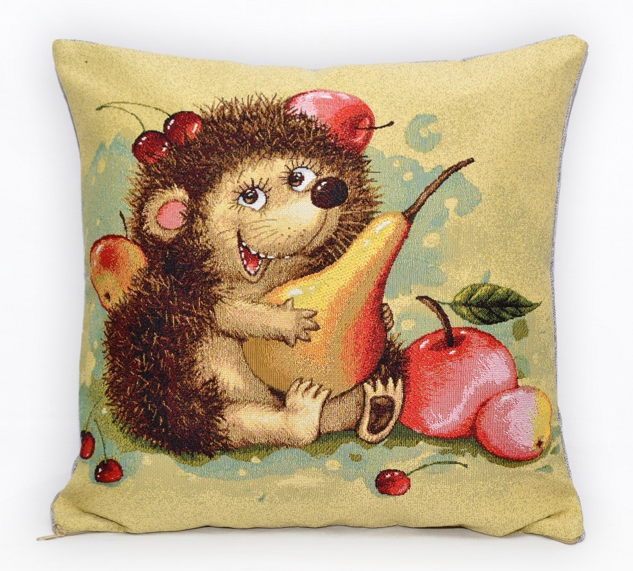 Веселый ёжик Фрукты- гобеленовая наволочка