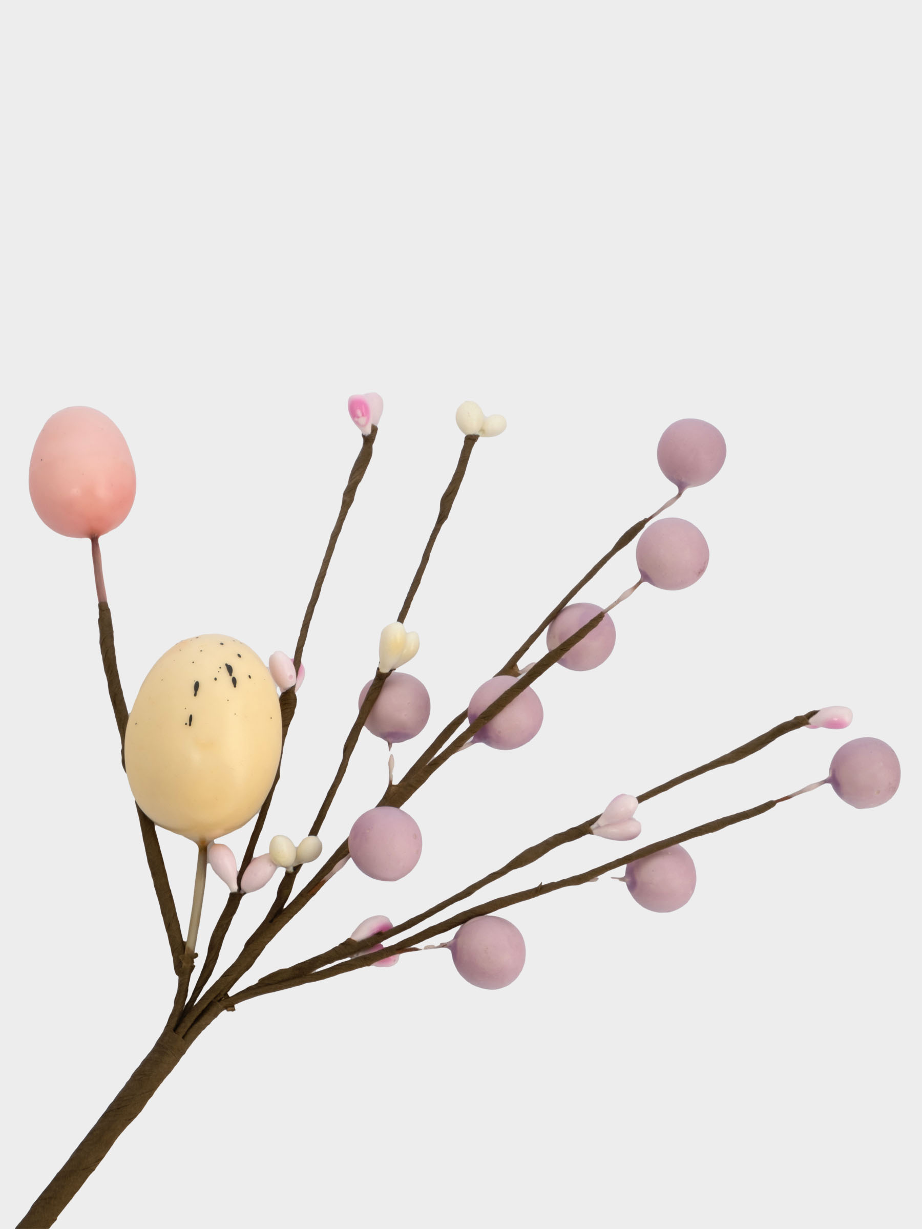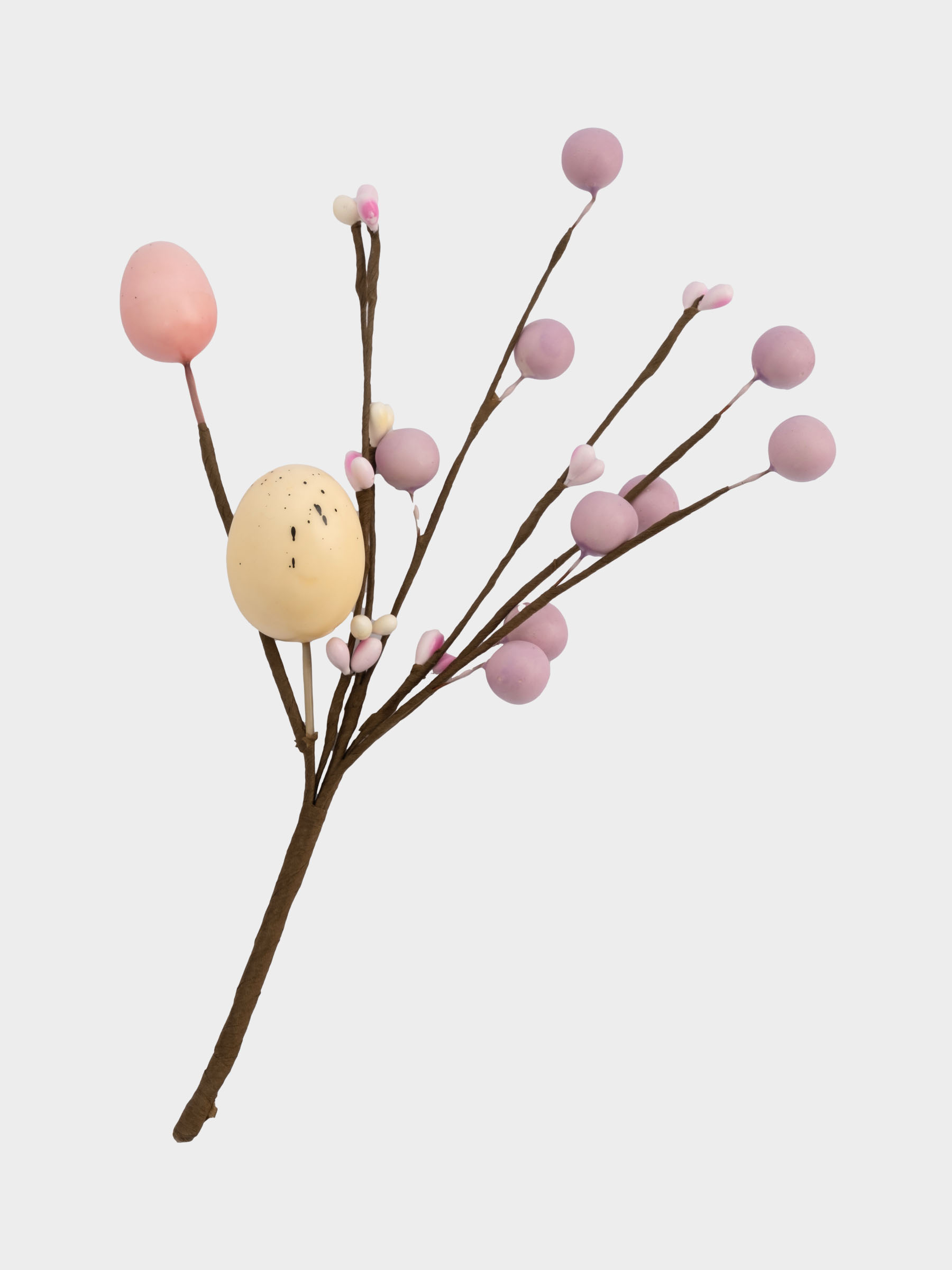 Ветка декоративная, 20 см, пенопласт/бумага, Ветка с розовыми яйцами, Interior Easter