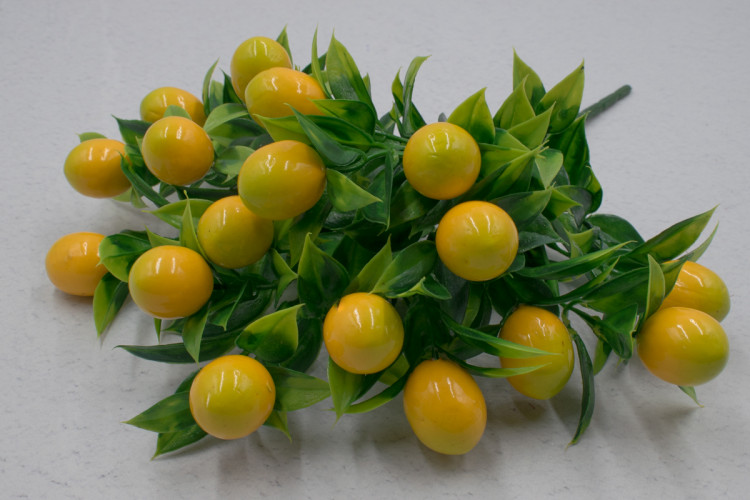 Две вот такие веточка лимона (высота 34 см., 6 ответвлений на ветке). Пластмасса. 675400005211 (карат2))