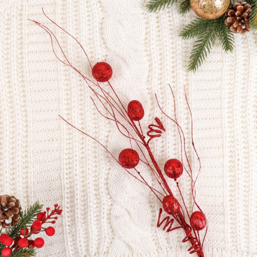 Эти сверкающие ветви с шариками добавят праздничного сияния в ваш интерьер. Их металлический стебель и мерцающие элементы создают атмосферу волшебства, напоминая о зимних сказках и уютных вечерах. Идеальный декор для тех, кто ценит винтажные новогодние традиции с современным штрихом.