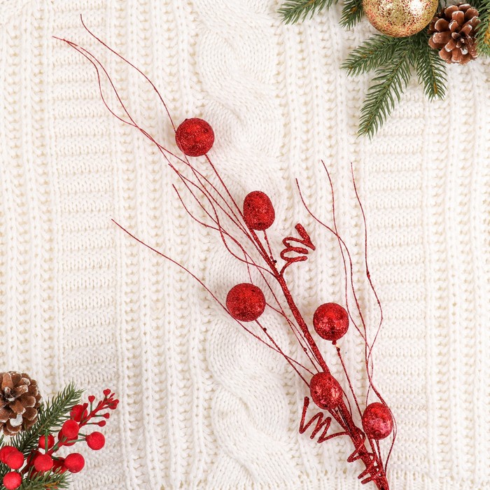 * Яркое мерцание: Детали покрыты блёстками, которые переливаются в свете гирлянд и новогодних огней. Ветка добавляет интерьеру искрящийся объём без лишней пестроты.