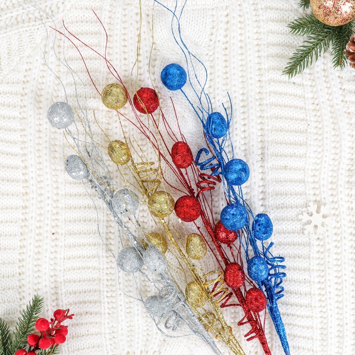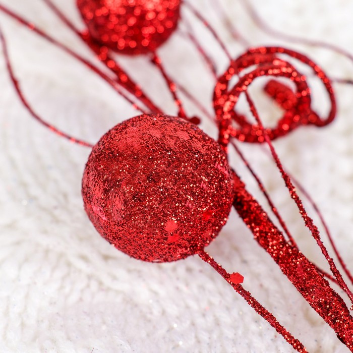 Декор «Блеск», ветка с шариками завиток, d=3 см, h=66 см, МИКС