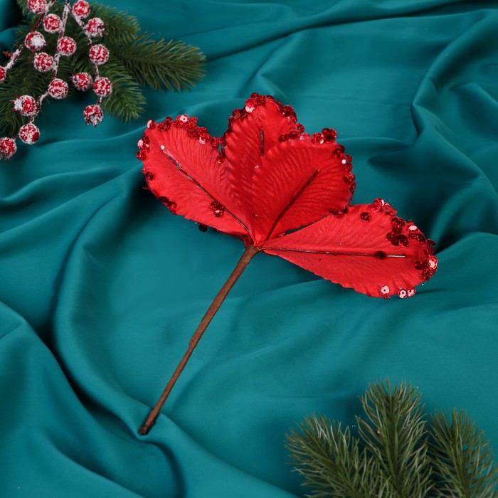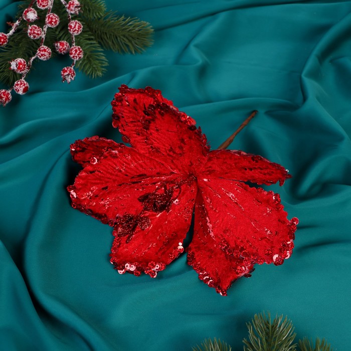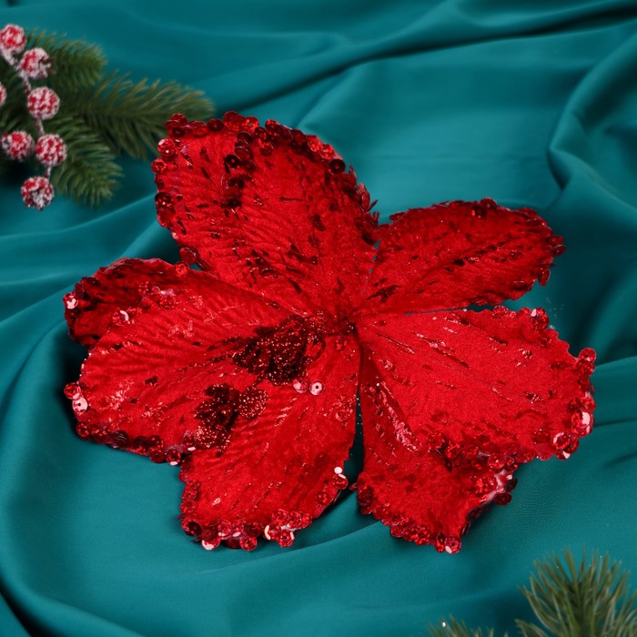Декор «Зимний цветок», капельки края, 18×20 см, красный