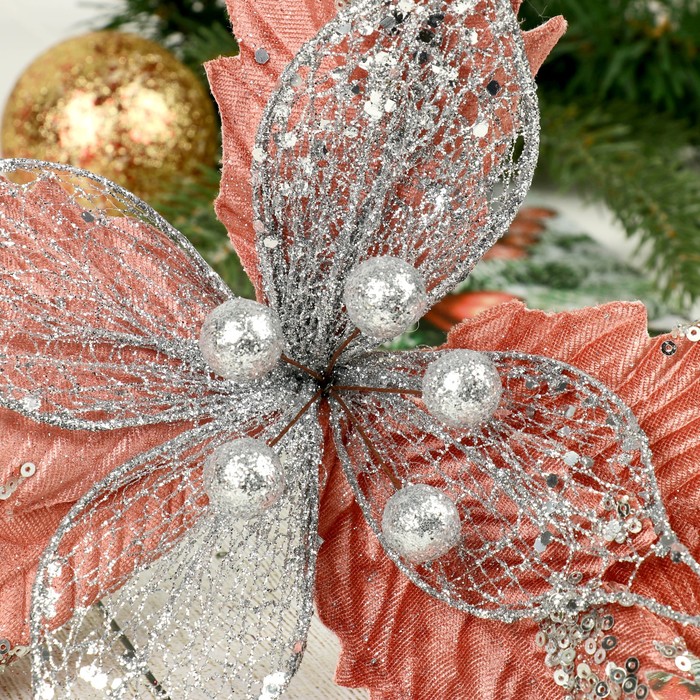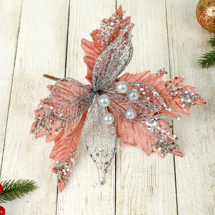 Декор «Зимний цветок», посыпка, 24×12 см, кремовый