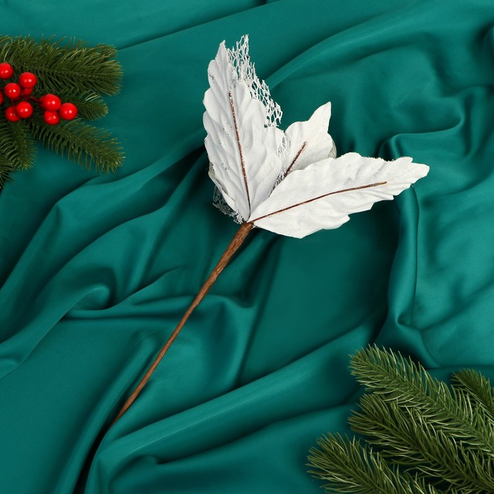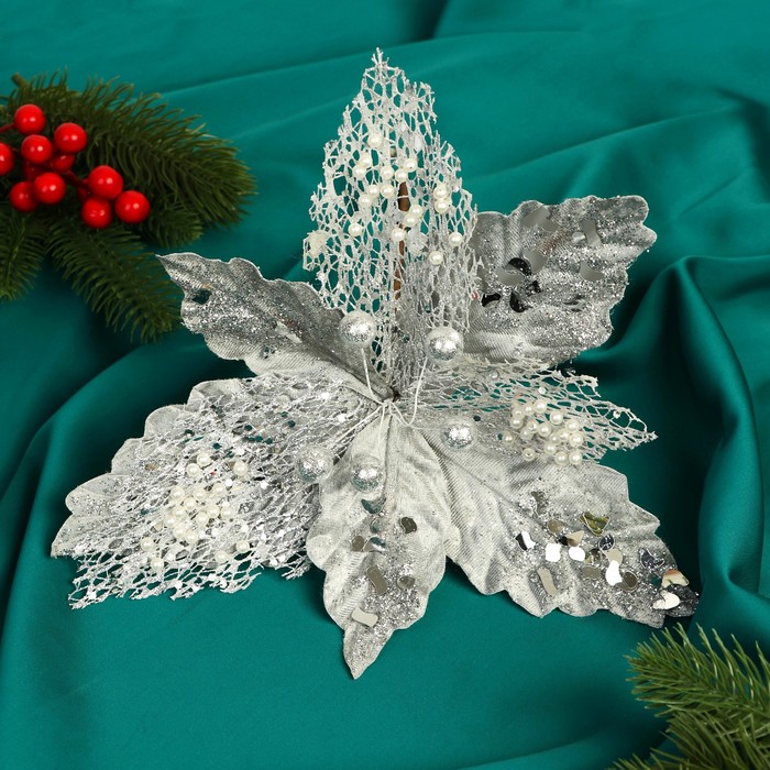 Декор «Зимний цветок», сеточка бусинки, 24×15 см, серебро