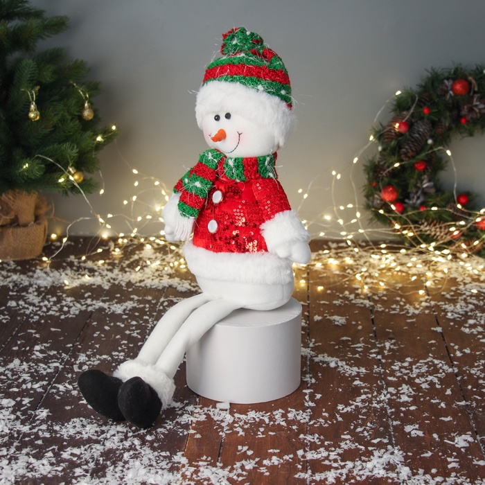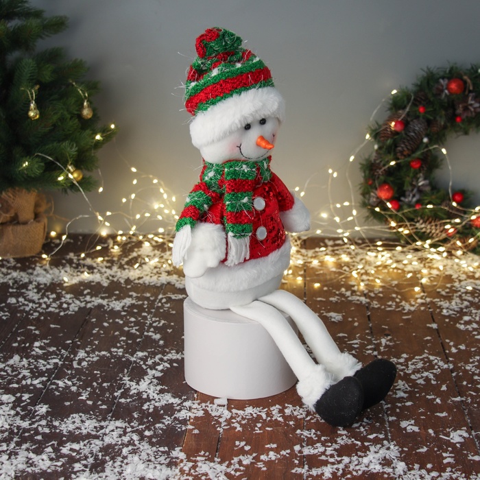 Игрушка мягкая «Снеговик в полосатом колпаке с длинными ножками» 48×23 см