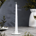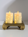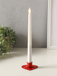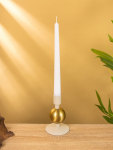 * Комплектация — включает восковые свечи и металлические подсвечники с дизайнерским оформлением, имитирующим новогодние шары.