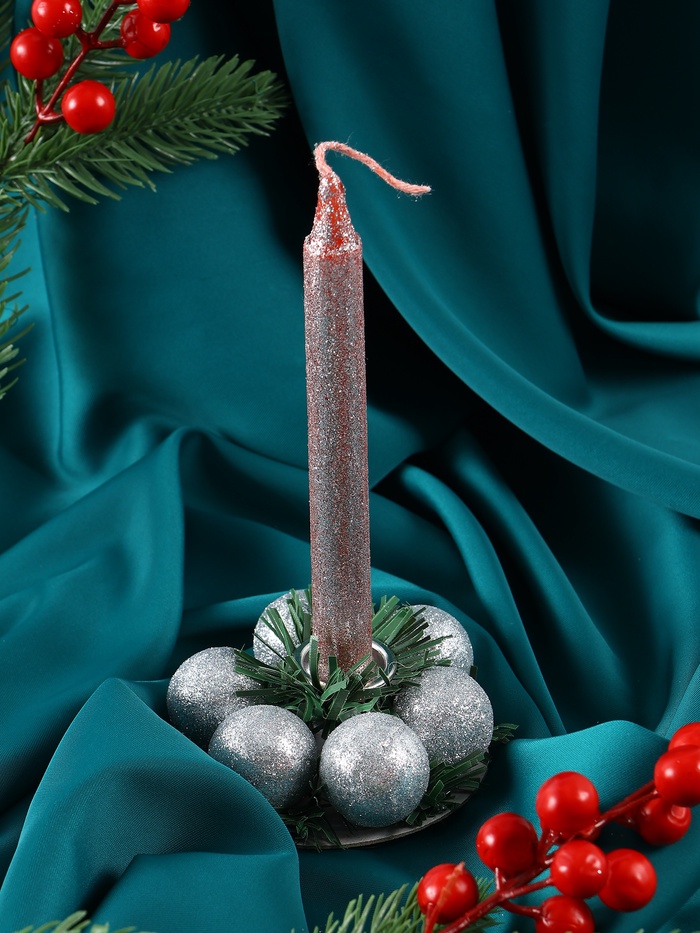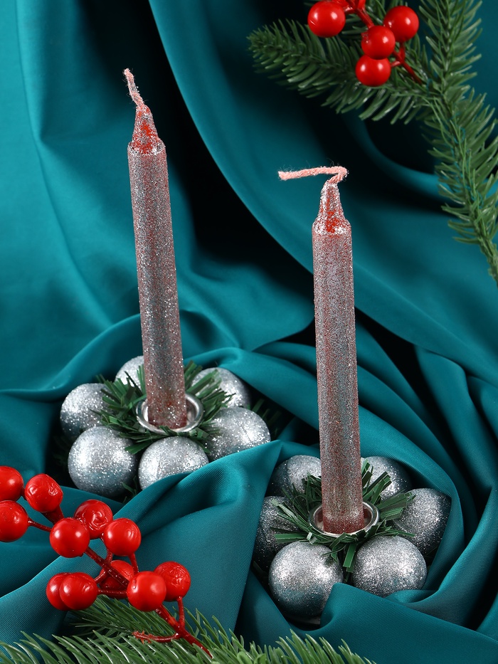 Свеча новогодняя с подсвечником «Шарики», набор 2 шт., 15 см, МИКС