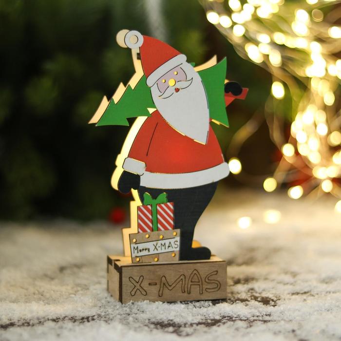 Светильник новогодний «Дед Мороз с ёлкой и подарками» 10×17 см