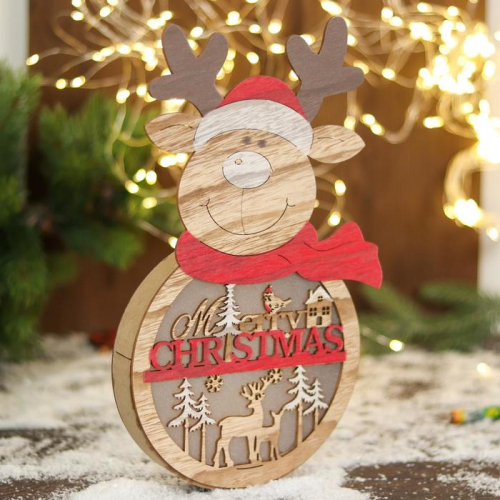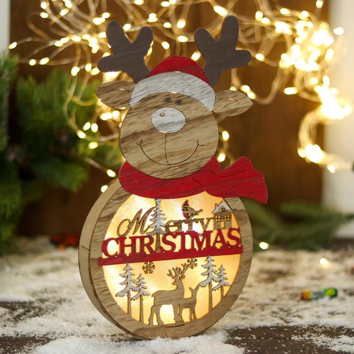 Светильник новогодний «Олень в шарфике и пожеланием» 16.5×30 см