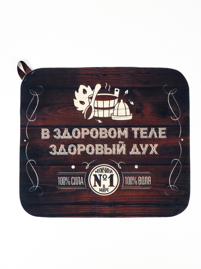 * Яркий мужской дизайн: тёмная гамма и тематический принт «Крутой мужик» сразу задают настроение. Такой выделяется в бане и отражает характер своего владельца.