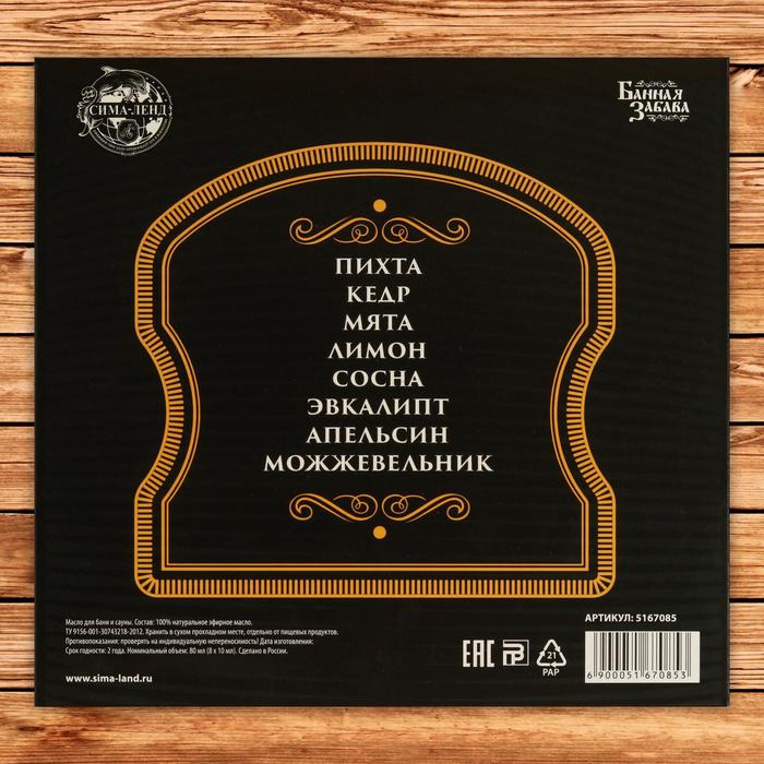 Аромат: Мята, Апельсин, Пихта, Эвкалипт, Сосна, Кедр, Лимон, Можжевельник