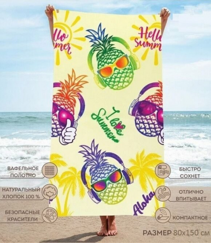 Полотенце банное "Ананас" 80*150 см. вафля хлопок 100%