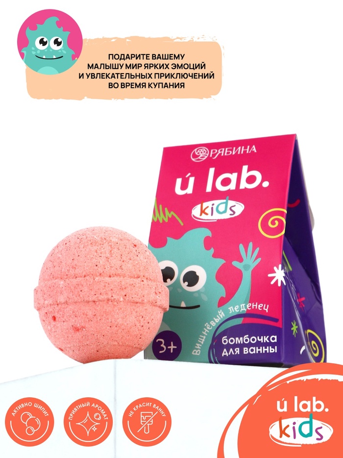 Бомбочка детская для ванны «Монстрики», аромат вишнёвый леденец 40 г, URAL LAB
