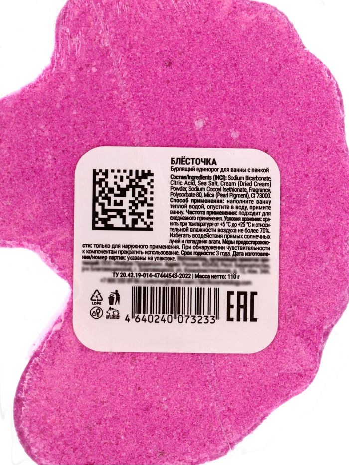 Бомбочка для ванн единорог «Блесточка», 110 г
