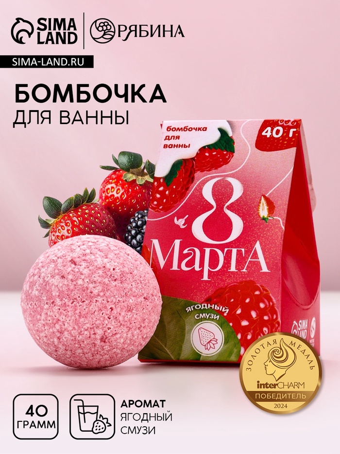 Бомбочка для ванны «8 Марта», 40 г, аромат ягодного смузи, Чистое счастье