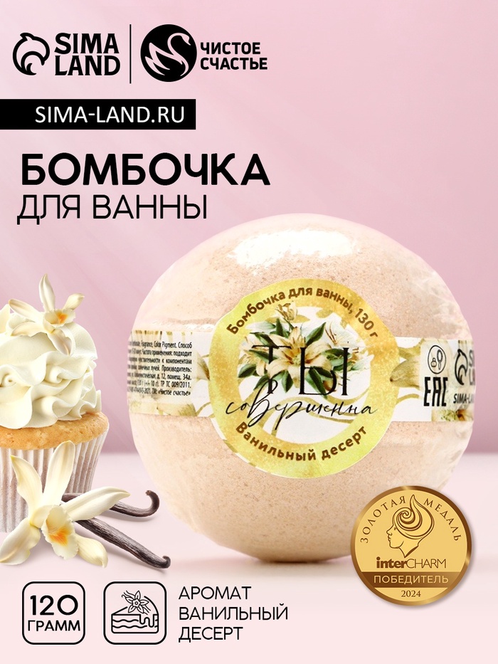 Бомбочка для ванны «Ты совершенна!», 130 г, аромат ванильного десерта, Чистое счастье