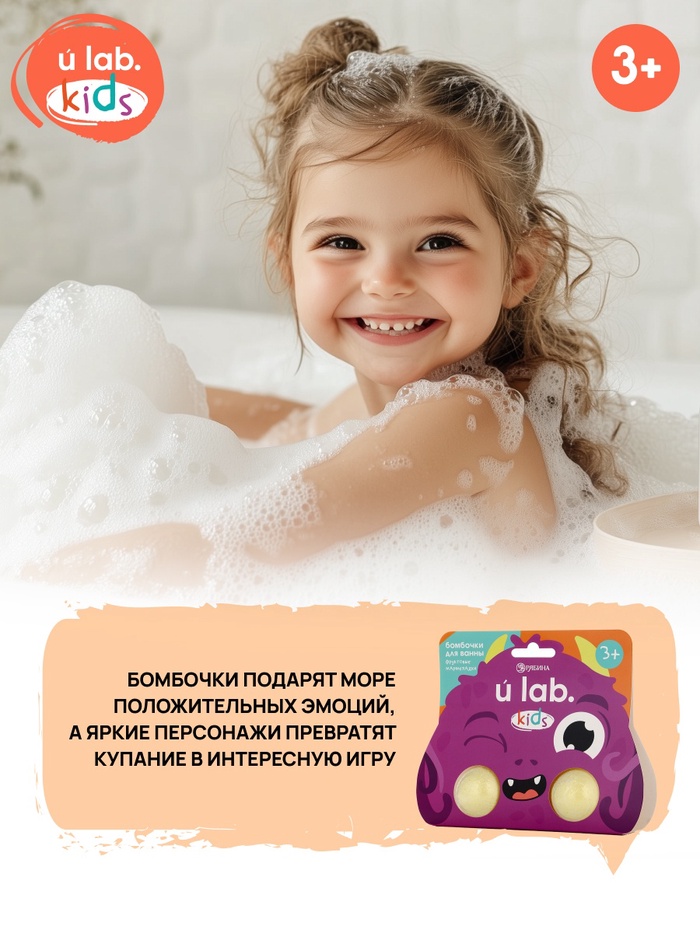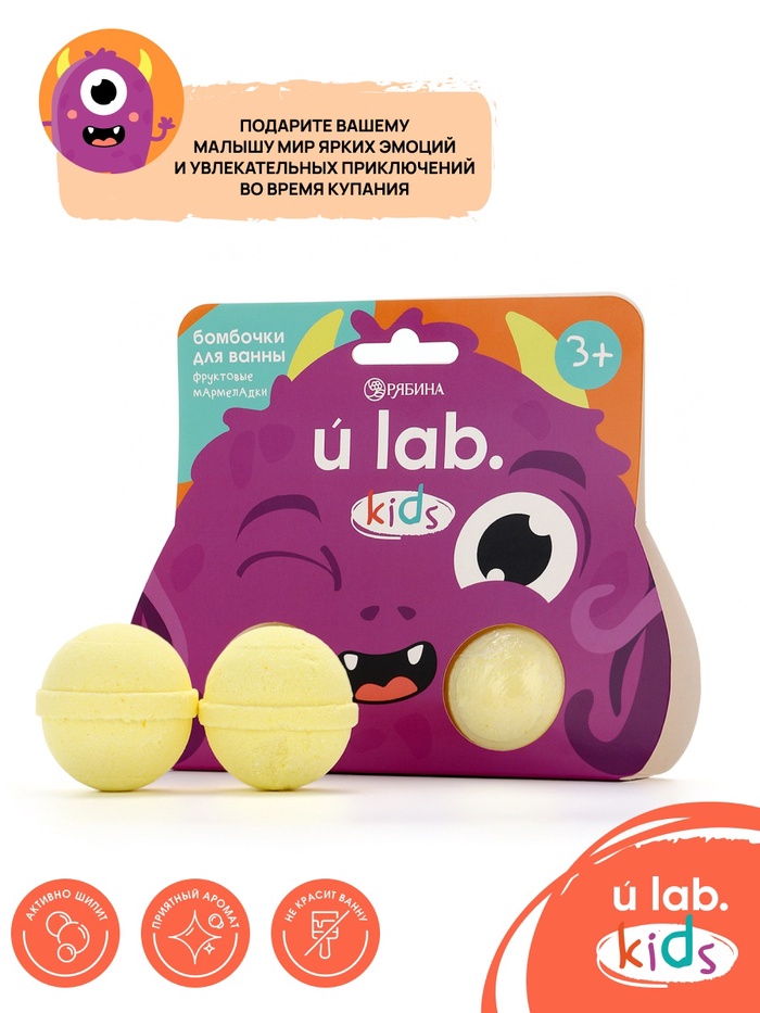 Бомбочки детские для ванны «Монстрики», 2×40 г, аромат фруктовые мармеладки ULAB
