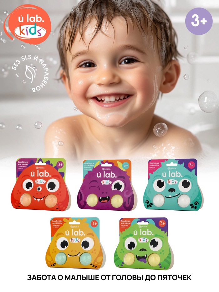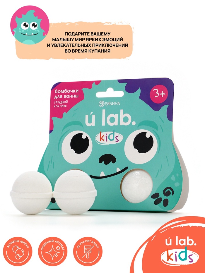 Бомбочки детские для ванны «Монстрики», 2×40 г, аромат сладкий кокосик ULAB