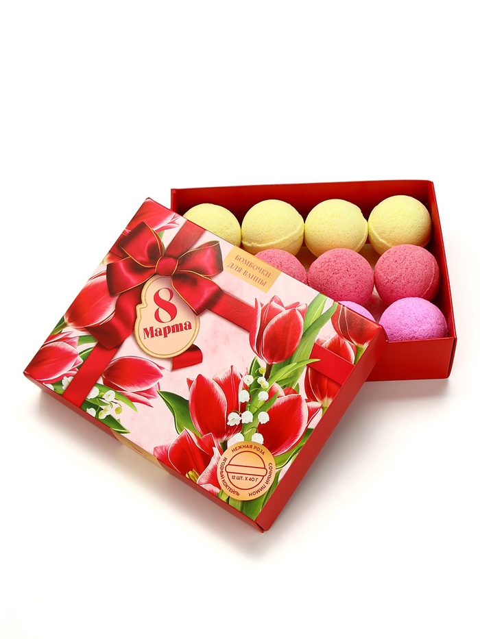 Бомбочки для ванны «8 Марта», 12×40 г, Чистое счастье