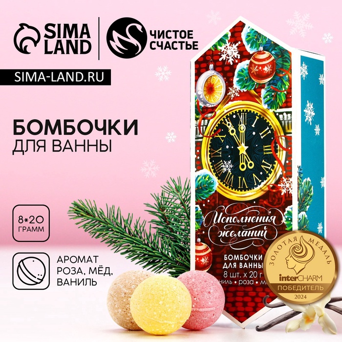 Бомбочки для ванны «Исполнения желаний», аромат роза, мед, ваниль, 8×20 г, Чистое счастье