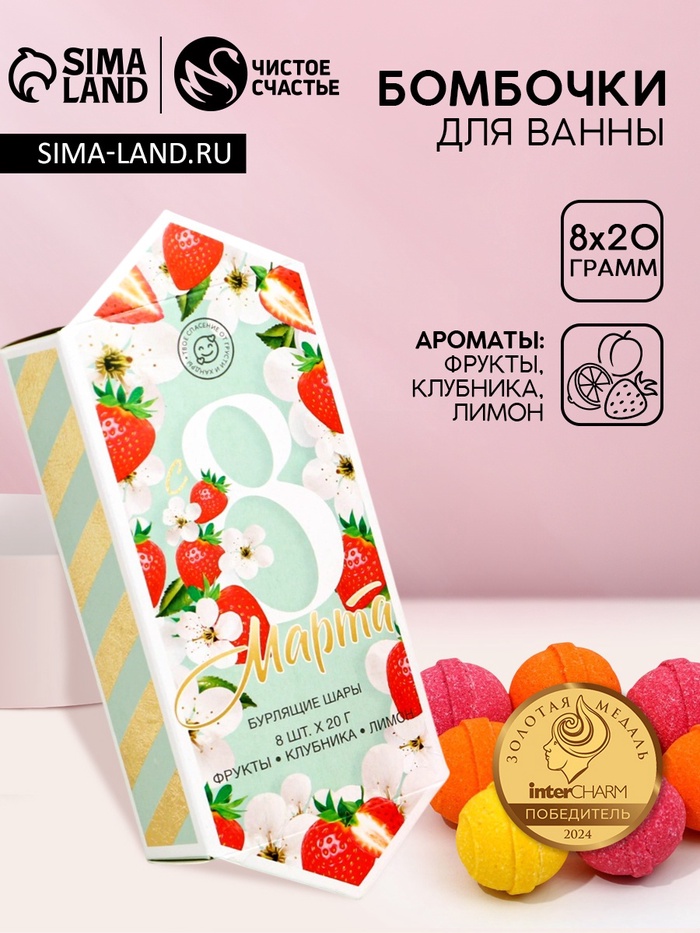 Бомбочки для ванны «С 8 Марта», 8×20 г, Чистое счастье