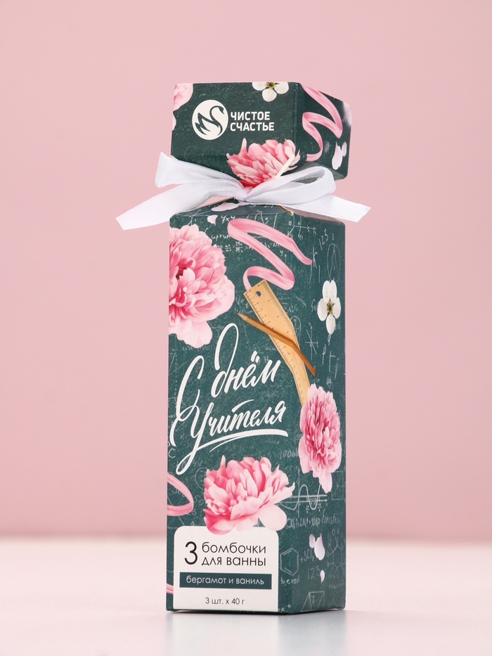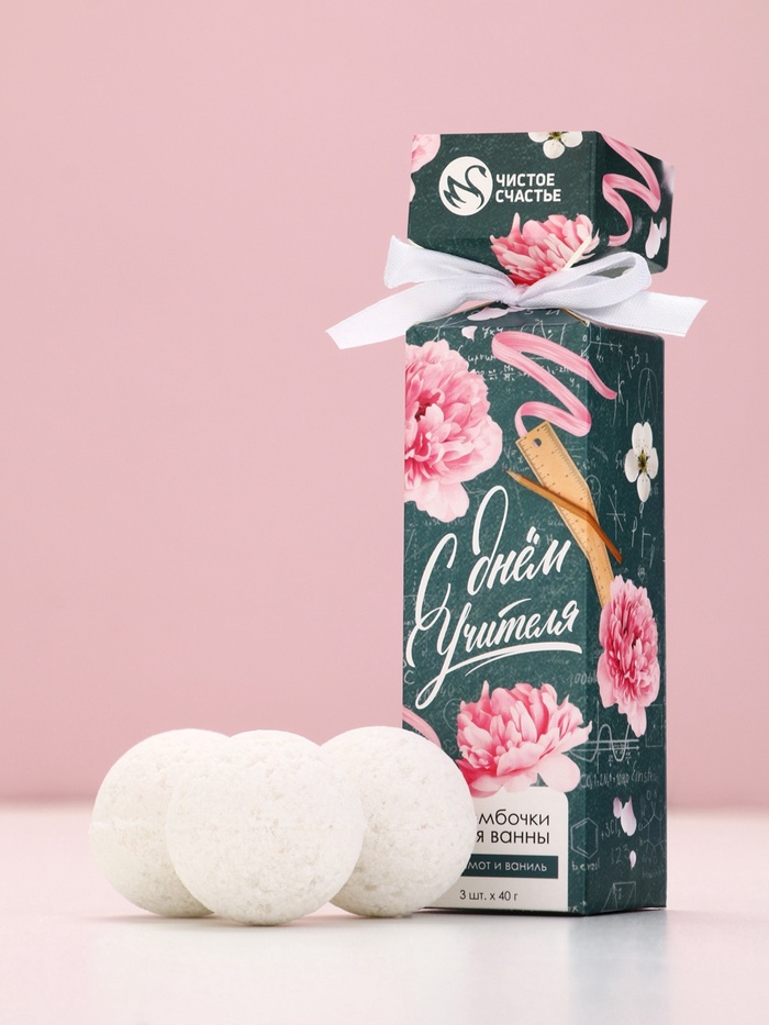 Бомбочки для ванны «С Днём учителя!», набор 3 шт. × 40 г, аромат бергамот и ваниль, Чистое счастье